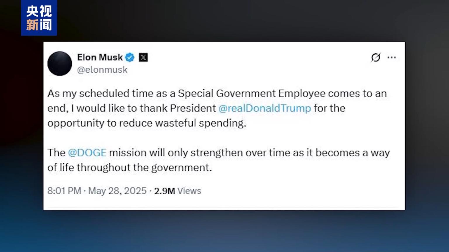 5月28日,好意思国“政府后果部”厚爱东谈主马斯克在外交媒体平台上官宣我方的下野决定,好意思国总统特朗普则在5月29日称,5月30日是马斯克在“政府后果部”任职的临了一天。